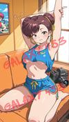 Just Chun-Li being your casual, teasing gamer girl at home — blushing a little, soles on full display, and that perfect mix of cute and sexy that only she can pull off.