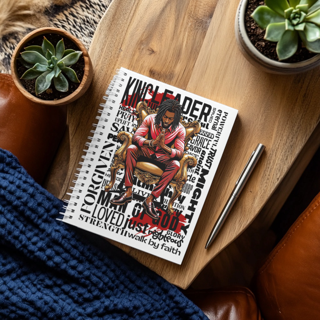 Celebrate faith, strength, and leadership with this powerful and visually striking digital journal cover. Featuring a highly detailed Afro-American man in prayer seated on a royal throne, this 5x7 design is perfect for journaling, devotionals, or gifting to a faith-driven loved one. Bold faith words like “KING,” “FORGIVEN,” and “WALK BY FAITH” create a powerful, layered backdrop that radiates empowerment.