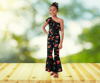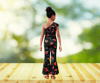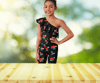 Girls Allover Floral Print One Shoulder Ruffle Trim Flare Leg Jumpsuit