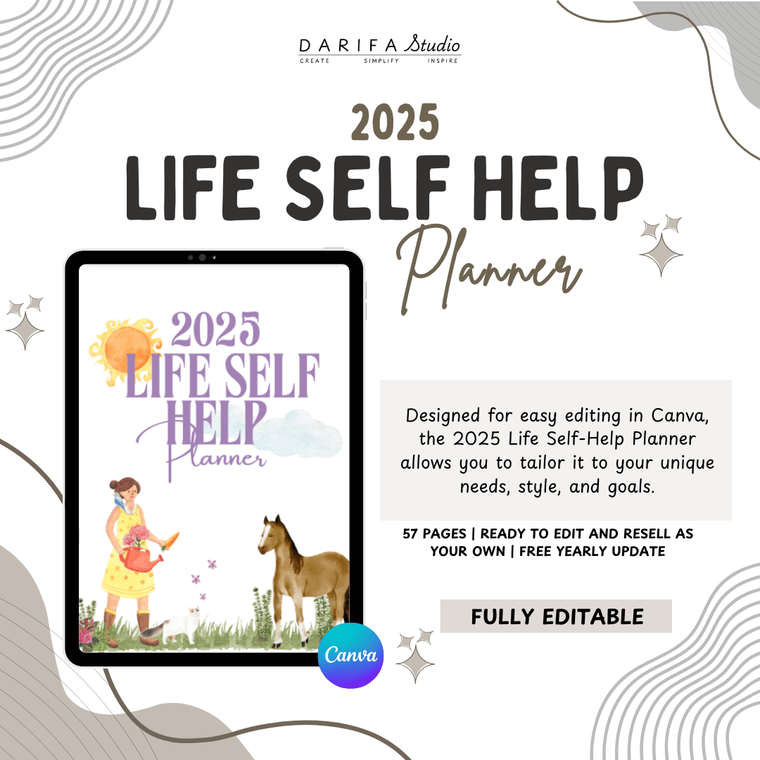 Designed for easy editing in Canva, the 2025 Life Self-Help Planner allows you to tailor it to your unique needs, style, and goals. Whether you’re focusing on self-care, building confidence, or achieving financial stability, this planner has everything you need to succeed in 2025!
