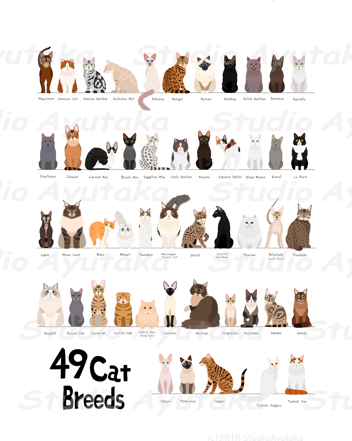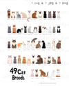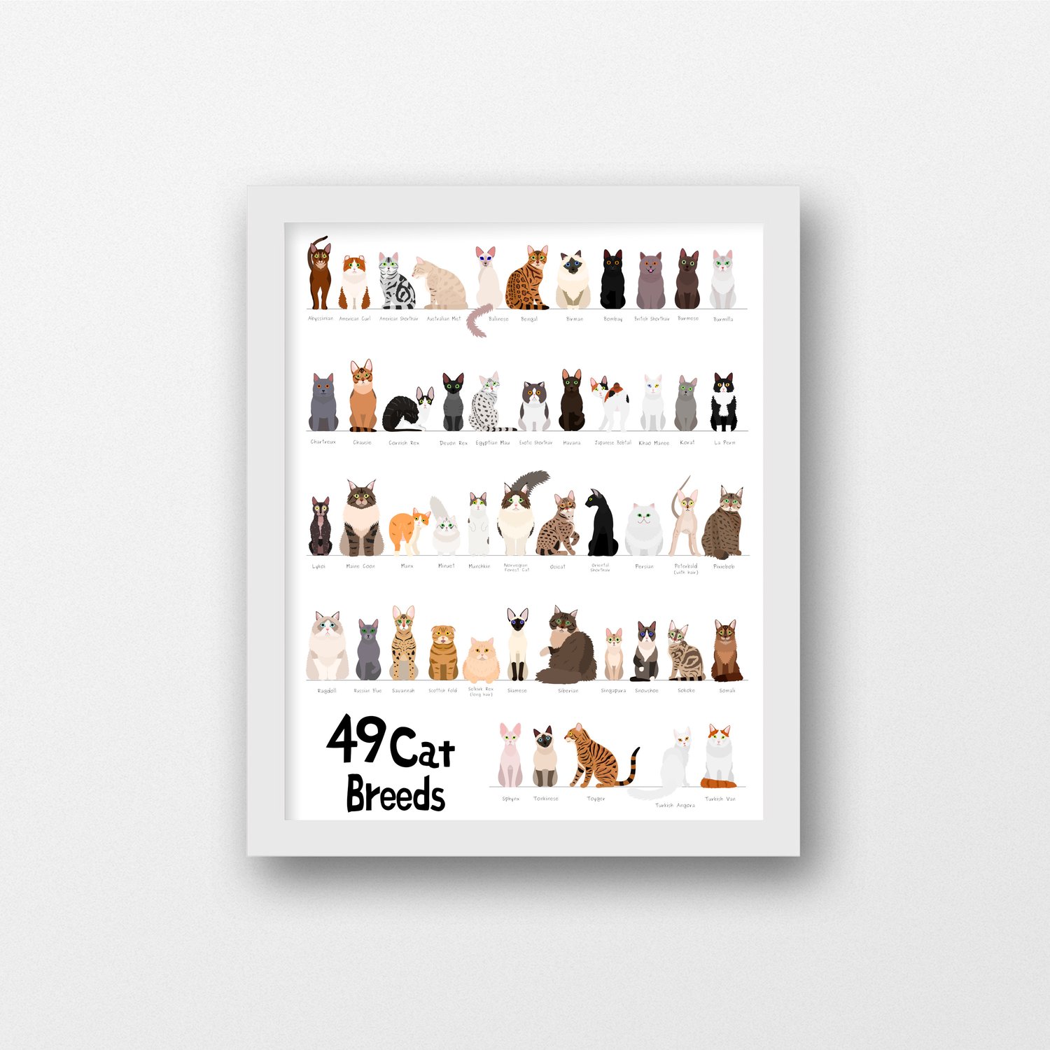 Elevate your space and celebrate the beauty of cats with our **49 Breeds of Cat Digital Chart**. Click "Add to Cart" now and bring home this charming piece of art today! 🐾