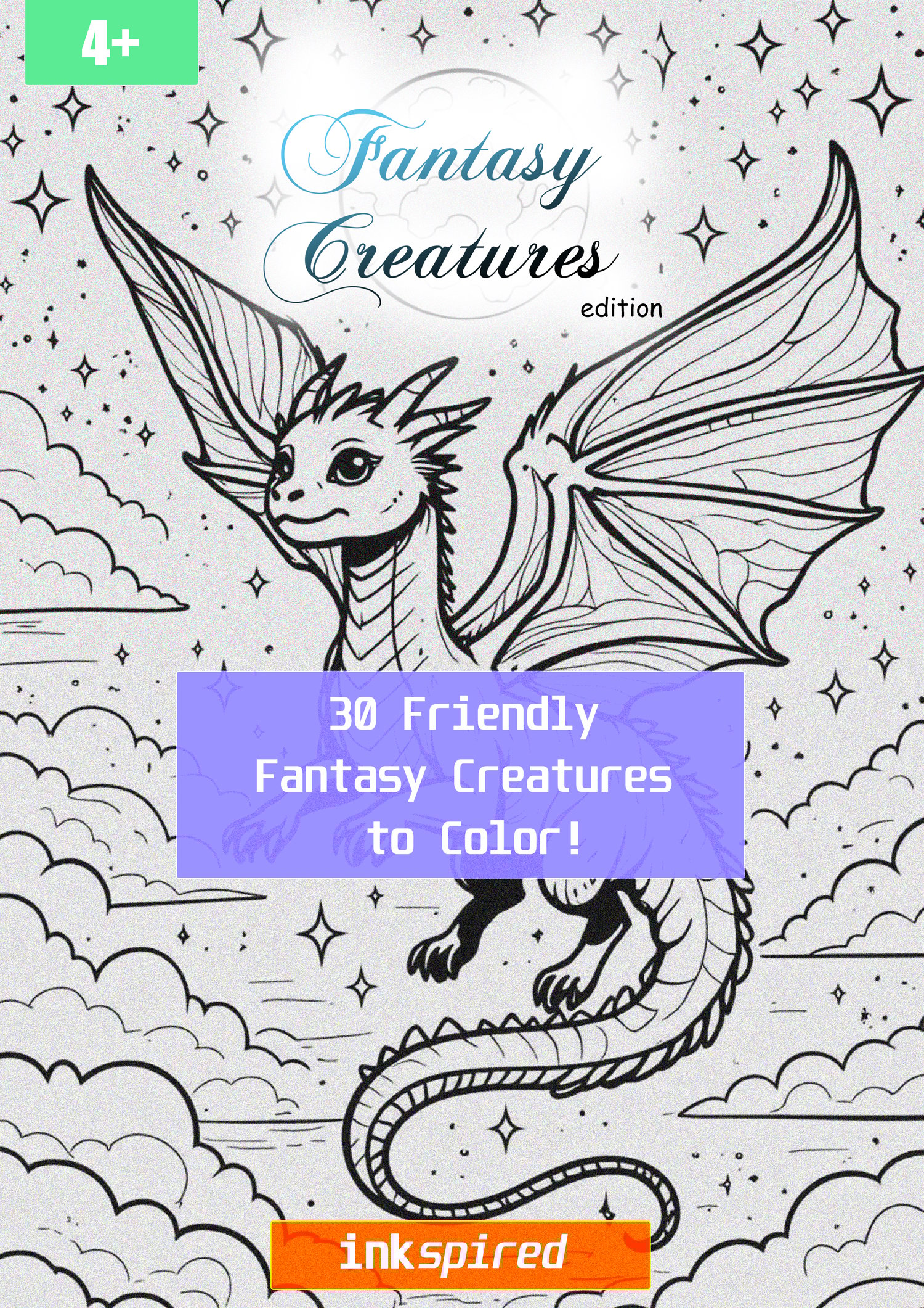 Unleash your child's imagination with the Fantasy Creatures Coloring Book, a magical journey through a world of friendly dragons, playful unicorns, cheerful fairies, and more! Designed especially for young artists aged 4 and up, this enchanting book features 30 delightful fantasy creatures just waiting to be brought to life with color.
