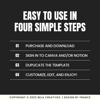 DISCLAIMER: This digital product comprises a template featuring a copywriting guide intended for reference and educational purposes. Please note that images are not provided. It is designed to be customized for your unique content, as our materials serve as a framework and not a substitute. Any resemblance to real businesses or products is purely coincidental. The creators disclaim liability for the misuse or misrepresentation of outcomes resulting from the use of the template without customization. Users are strongly encouraged to exercise their judgment and discretion when applying the template to meet their specific needs.