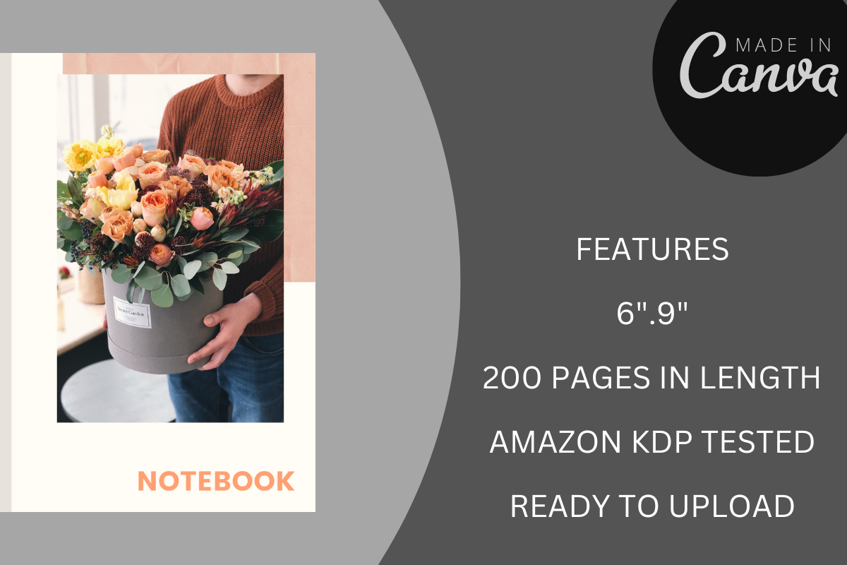 FLOWER KDP LINED PAPER COVER, LOW CONTENT BOOK COVER FOR KDP READY UPLOAD, FLOWER KDP JOURNAL PAPER, FLOWER JOURNAL NOTEBOOK MOCKUPS, KDP CANVA NOTE