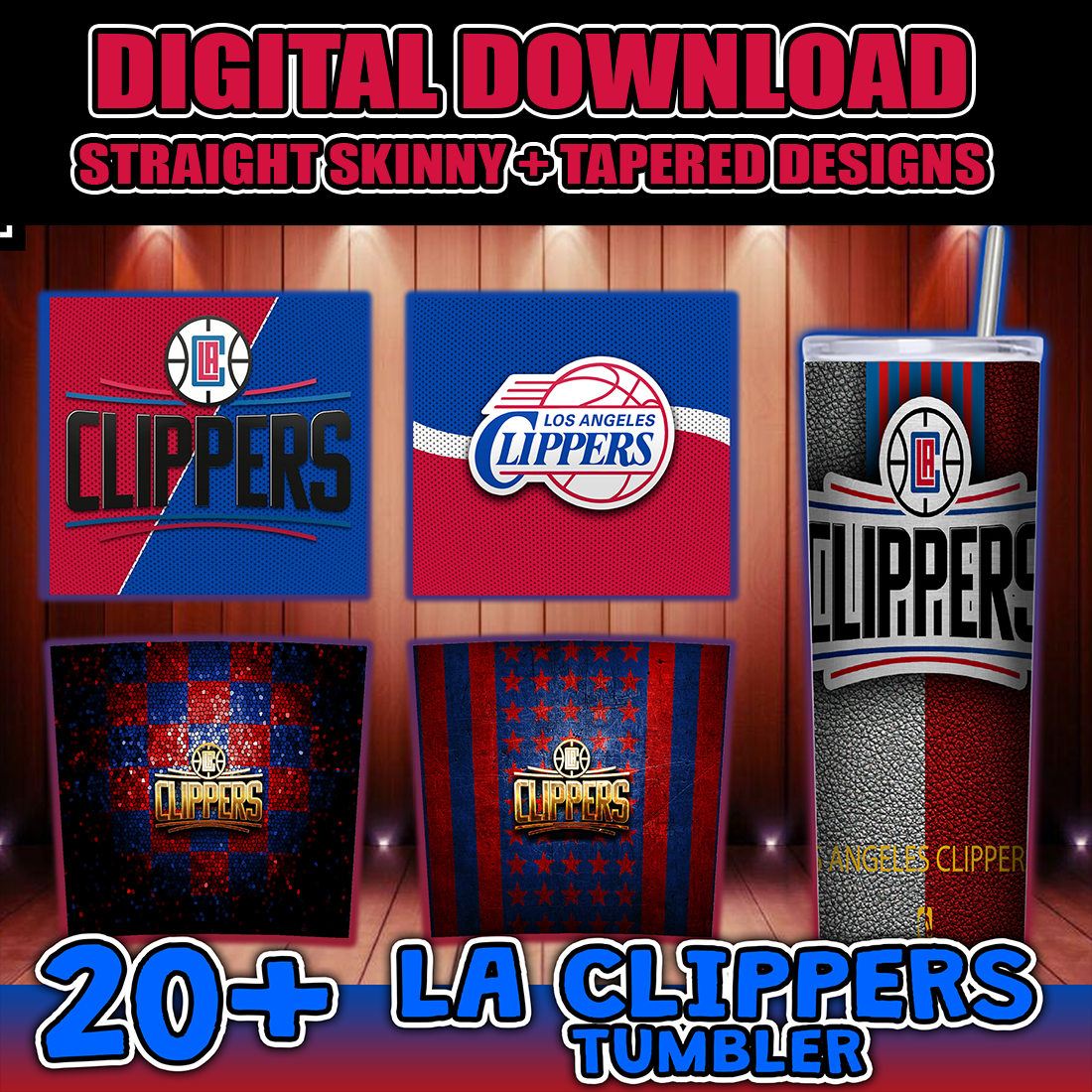 20+ NBA LA Clippers Team 20oz Skinny Tumbler Wrap Bundle, Basketball Team Tumbler Designs, LA Clippers 30oz Tumbler Wrap, NBA Team Sublimation Design, Digital Download