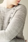 Knit from the top down with raglan sleeve shaping, a basket weave pattern textures the front panel and sleeve cuffs.