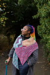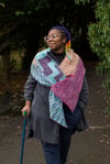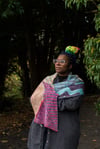 Yarns used range from a bouncy wool 4ply, to a plant fibre fingering weight yarns. Please be aware that plant fibre yarns, should be knitted on a tighter gauge, so use a needle size that produces a pleasing fabric, however this will result in a thinner shawl.