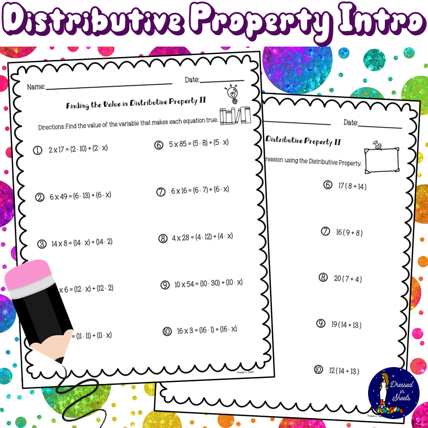 Students will learn how distributive property works in a real life scenario and then use that knowledge to solve distributive property problems. The problems included will also have students find the variable.