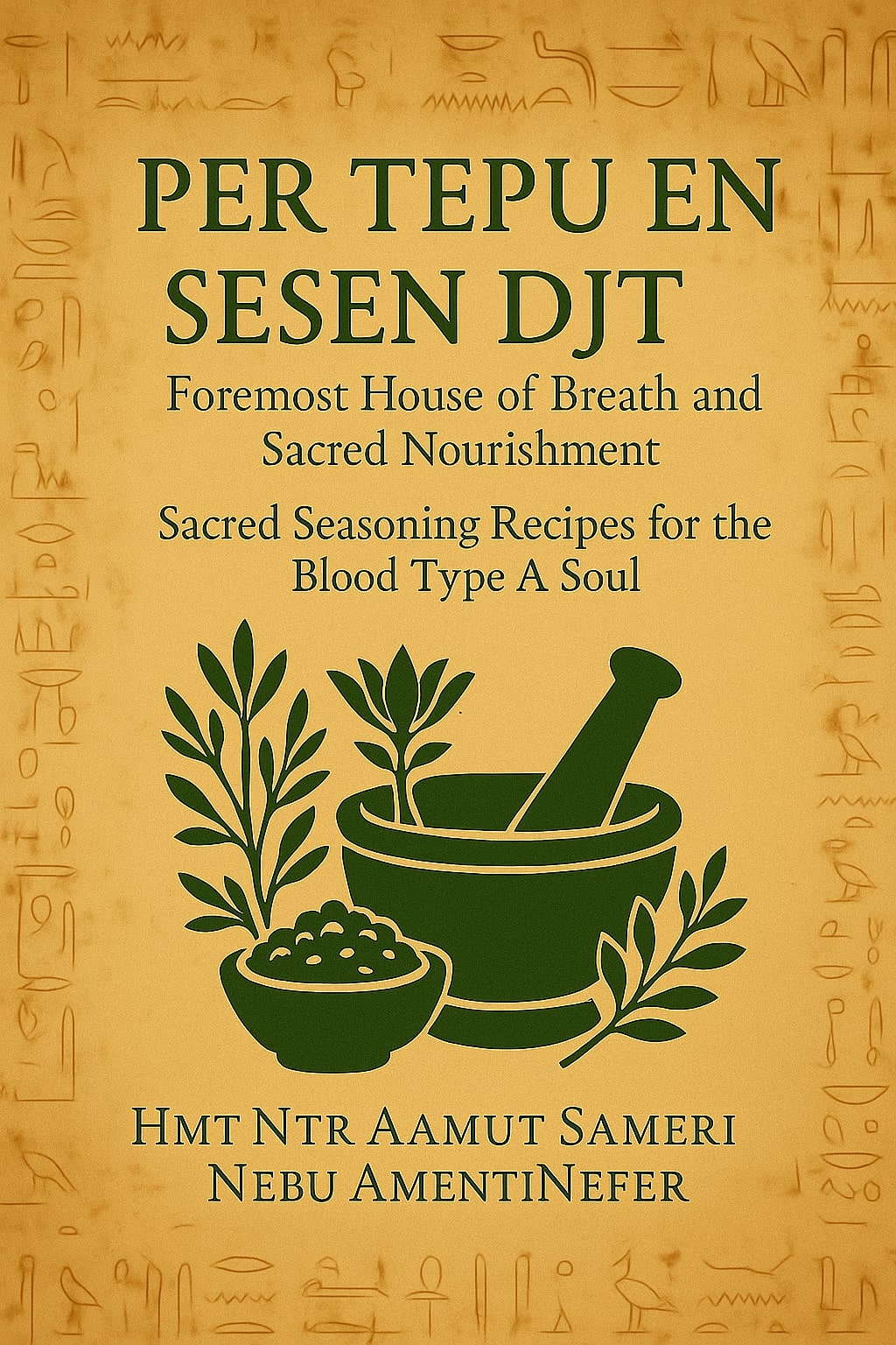 This sacred cookbook is a spiritual and ancestral offering for those walking the path of soul remembrance through food. Rooted in Kemetic metaphysics and aligned with the Blood Type A way of eating, it presents 14 original seasoning blends crafted to support the body-temple without compromise. Each recipe is more than flavor, it is: a heka of healing, a return to sacred composition, and an invitation to nourish in alignment with one’s design.