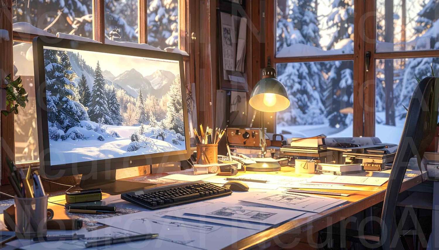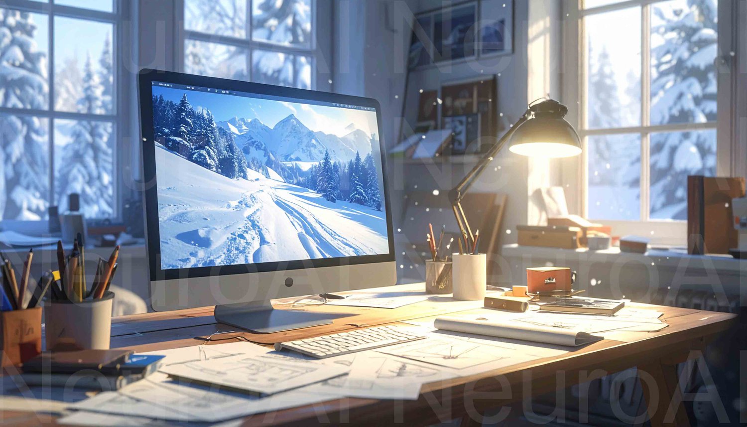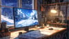 Inspiring winter landscape on desktop computer