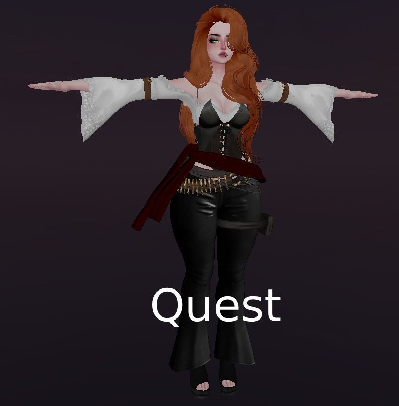 4 Tops/ Dress/ 2 Pants/ Shorts/ Panties/ 3 Boots/ Socks/ Corset/ Cape/ Belts/ Leg Pouch/ Necklace/ Sleeves/ Waist Scarf