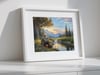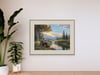 Tranquil Riverside – Elderly Man and Sunset Landscape Art uk053