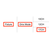 * Revise, desde el display de su equipo, que el menu Fixture / Dmx Mode, muestre los modos: 10CH, 12CH y 17CH (tercer y cuarta foto).