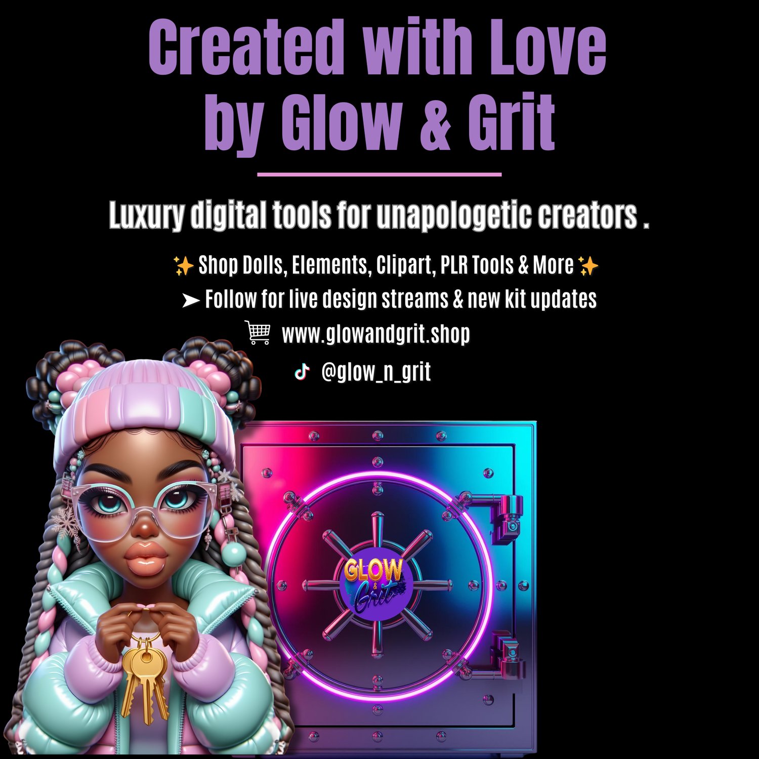 • Glow & Grit–style doll prompts