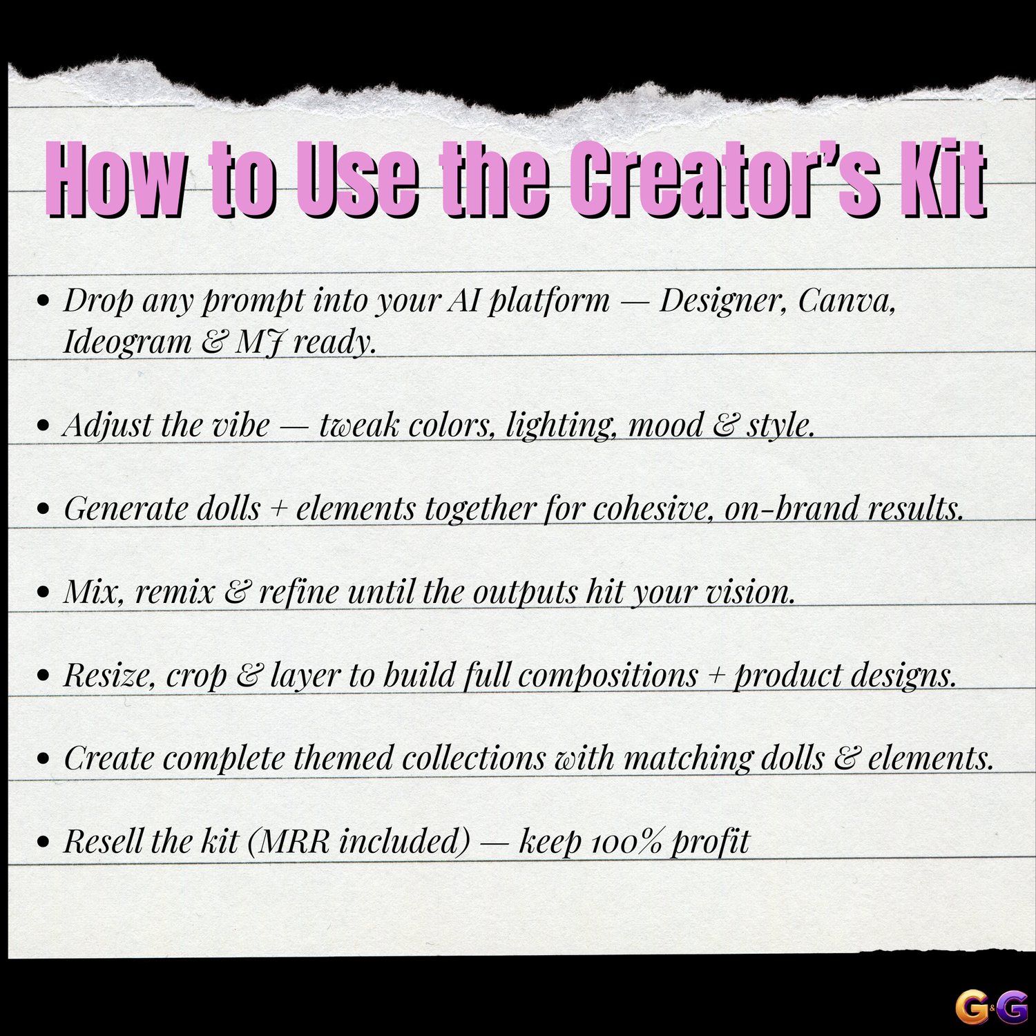 G&G Creator’s Design Kit 1.0 | AI Prompt Collection for Dolls & Elements | Instant Download