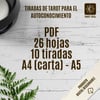 Las tiradas están presentada en un formato sencillo y claro, con recuadros para escribir tus ideas, intuiciones y mensajes del Tarot. Es un material creado para que puedas explorar tu mundo interno a tu ritmo, con calma, desde tu propia práctica.