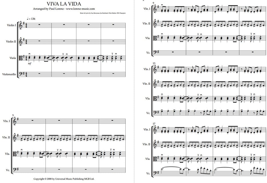 Viva La Vida - String Quartet Sheet Music PDF Download