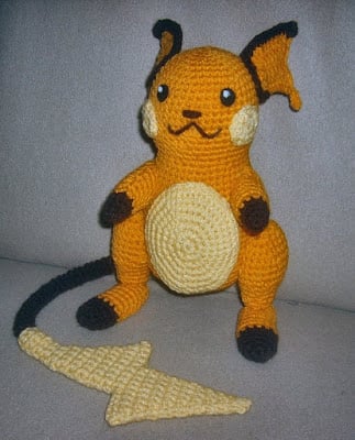 Raichu has been much requested and I finally got around to making him. Parts of him are a little different than most pokemon (namely the ears and tail) and the instructions look much more difficult than it really is. This is definitely one of the pokemon I would recommend for those with at least a little experience in making dolls, but with patience even a beginner could manage it :) As always, if you find anything in the pattern that's confusing or if you find a typo, let me know and I'll fix it asap.