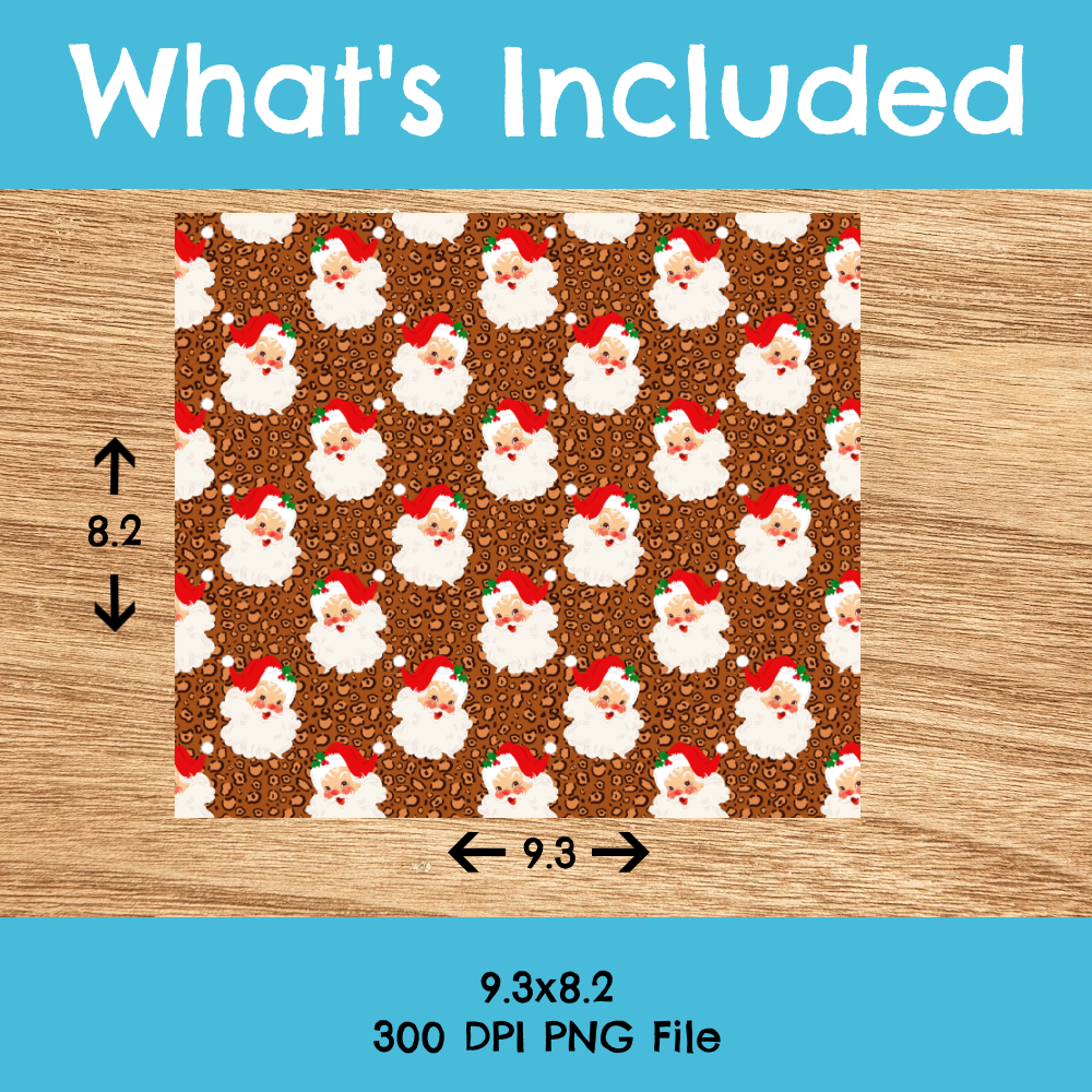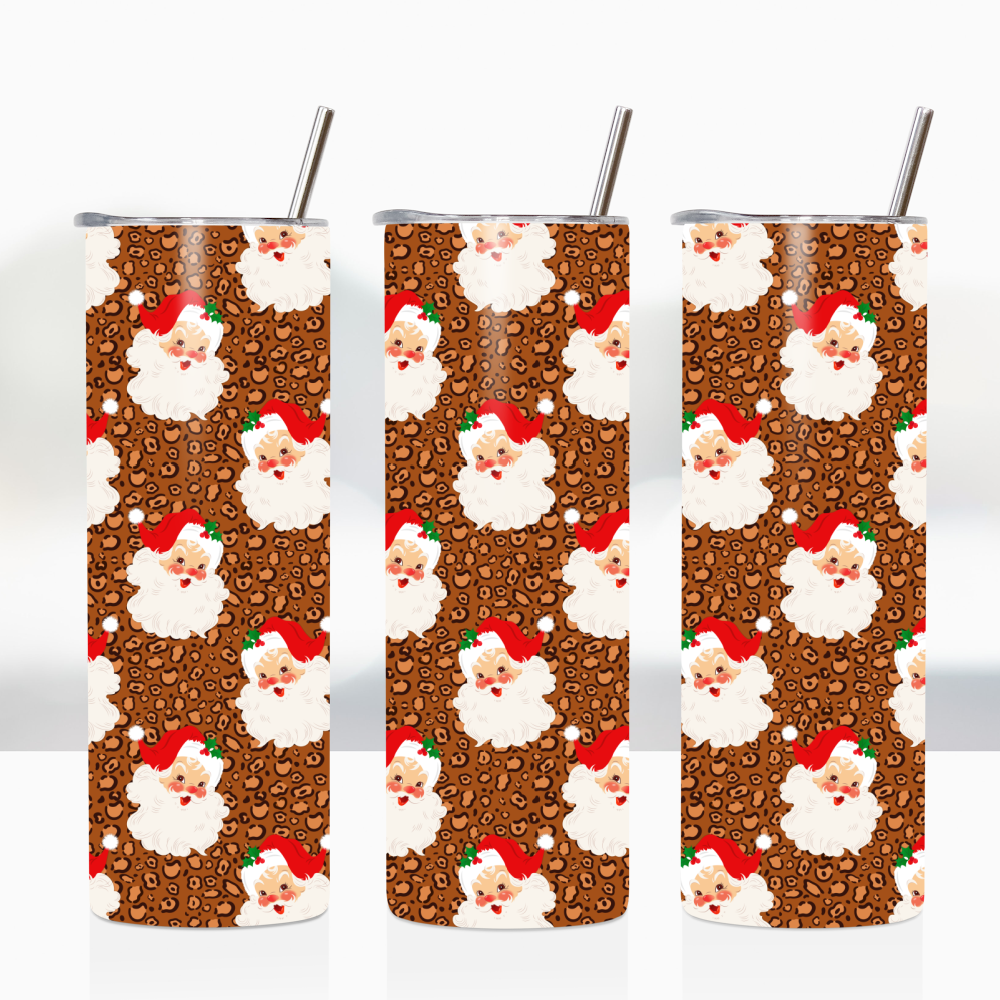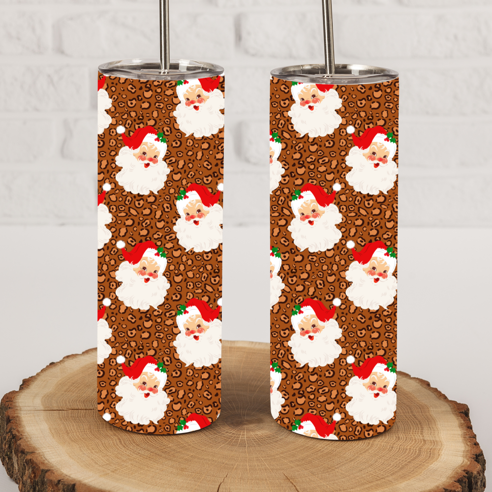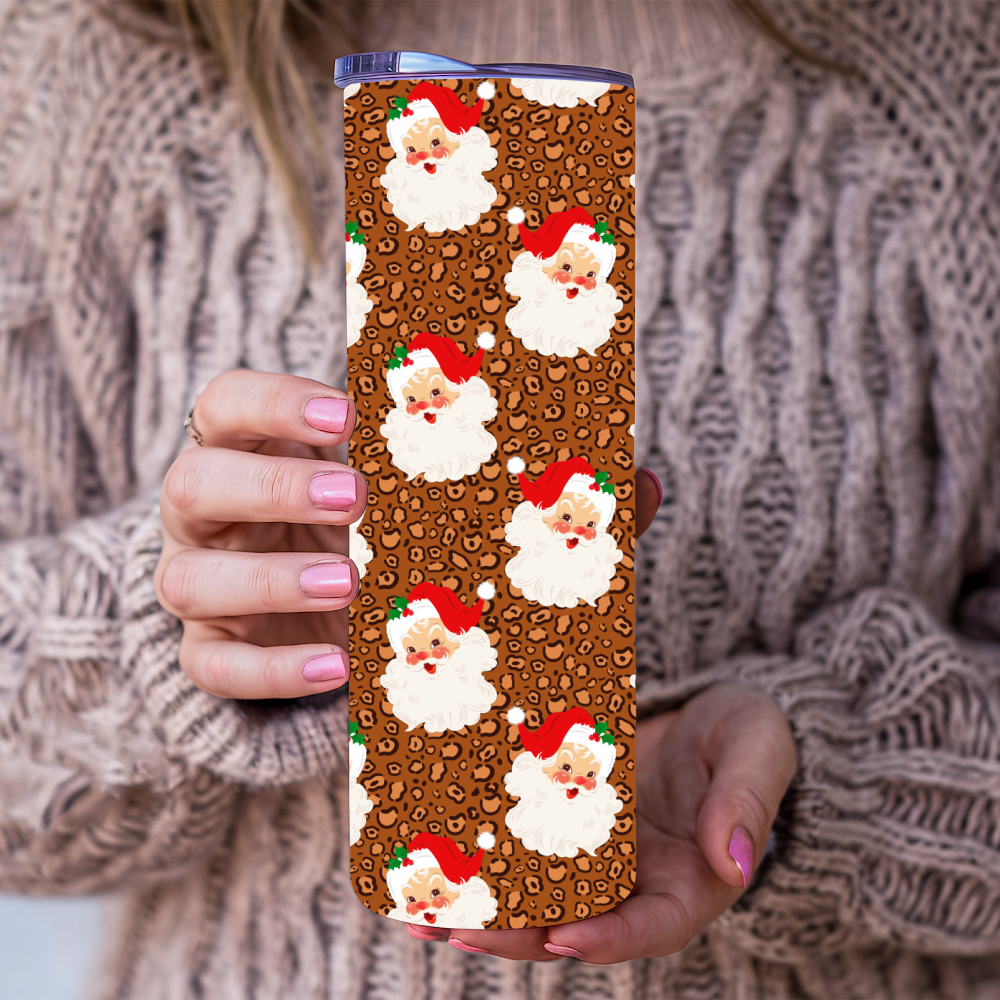 Skinny Tumbler Wrap, 20 oz, Printable Sublimation, Wild Leopard Santa Christmas