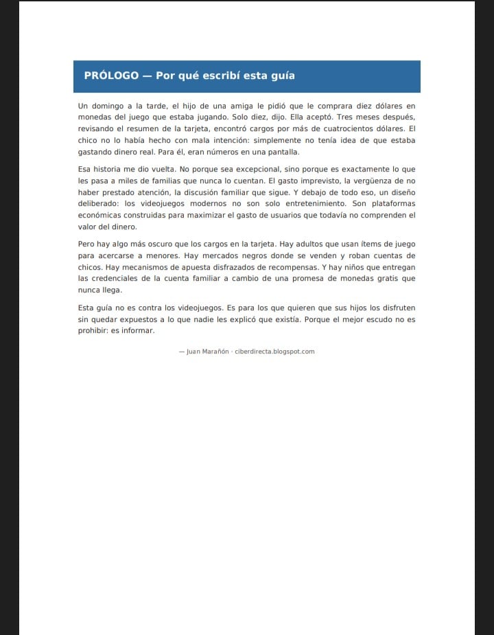 Este PDF explica, de forma clara y práctica, qué riesgos reales existen hoy en los videojuegos modernos y cómo prevenirlos sin prohibir ni generar conflicto en casa.