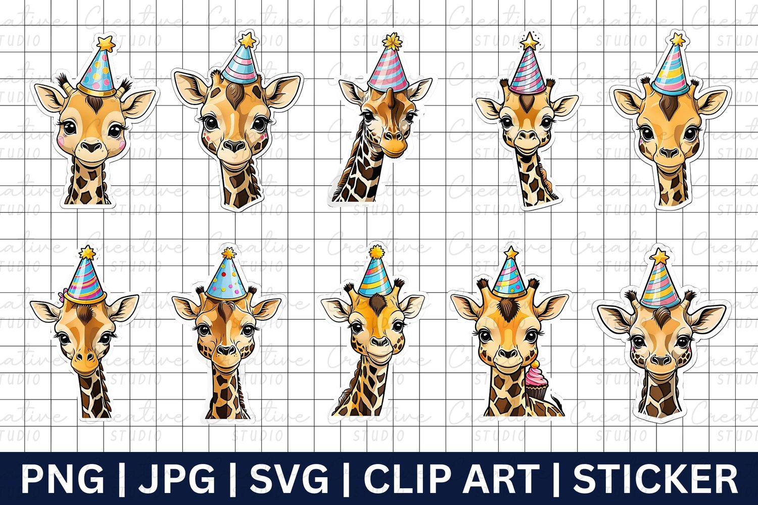 Giraffe Wearing a Party Hat Design Clip Art Sticker Sublimation