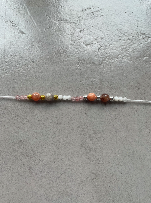 Zur Reinigung gehst du mit dem Armband oder Fußkettchen duschen oder hältst es unter fließendes Wasser. Alternativ kannst du es auch über Nacht auf eine Selenitplatte legen.