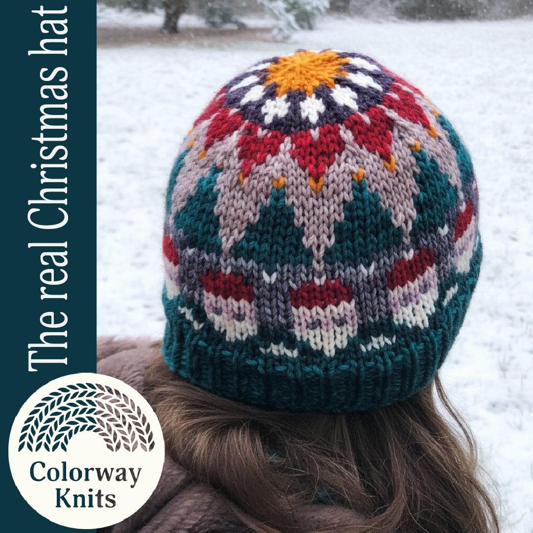 This hat is worked in the round from ribbing to top. It contains some easy stranded colorwork and uses small amounts of 7 different colors.