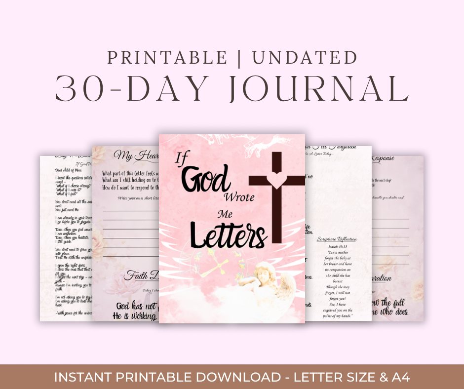 If God Wrote Me Letters is a 30-day printable devotional journal that invites you into a daily conversation with God — one filled with love, truth, and gentle guidance.