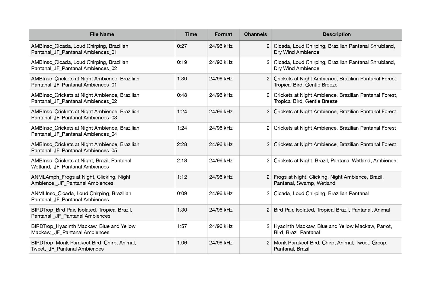 Experience the vibrant soundscape of the Brazilian Pantanal, one of the world's largest tropical wetlands. This sound collection is a celebration of the region's incredible avian biodiversity, featuring birds such as jabirus, macaws, herons, jacanas, toucans, screamers, egrets, and more. From melodic calls to social chatter, gentle chirps to echoing squawks, immerse yourself in the unique and dynamic voices of the Pantanal's wetlands. Whether you're creating a tranquil nature scene or evoking the lush energy of the wild, this pack brings the essence of the Pantanal to your sound design.