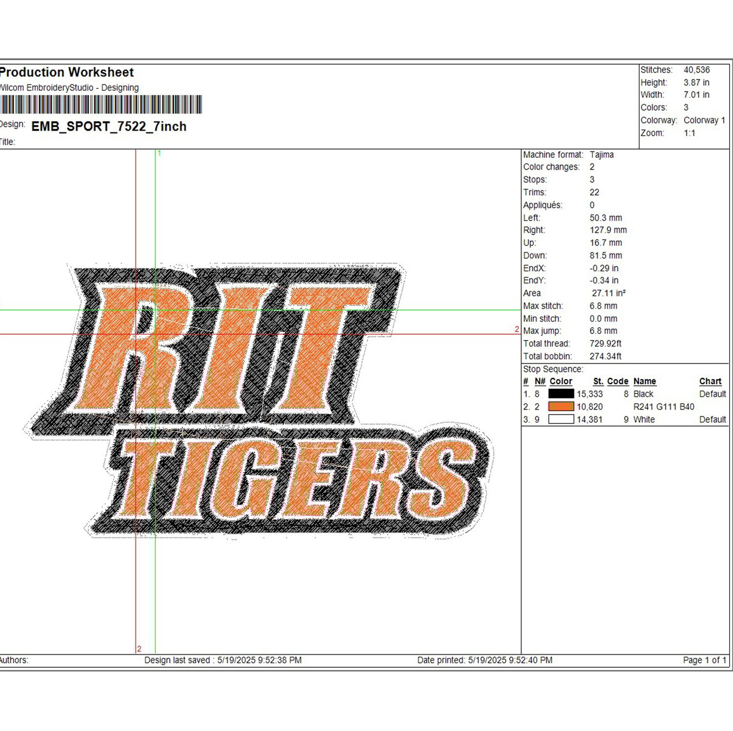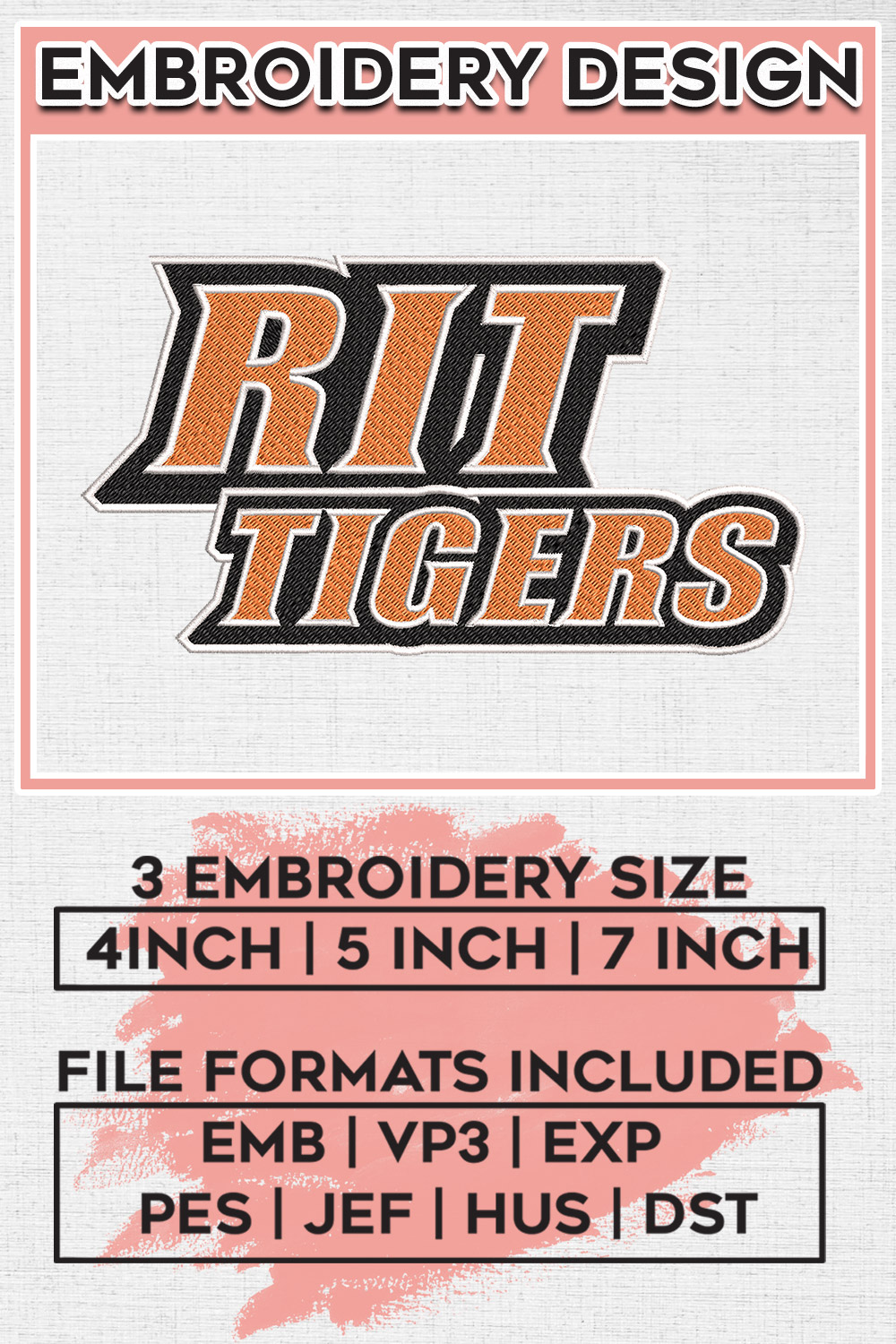 RIT Tigers Team Writing Logo Embroidery Designs, NCAA RIT Tigers Machine Embroidery Files, NCAA Logo embroidery designs, Ncaa RIT Logo, Digital Download