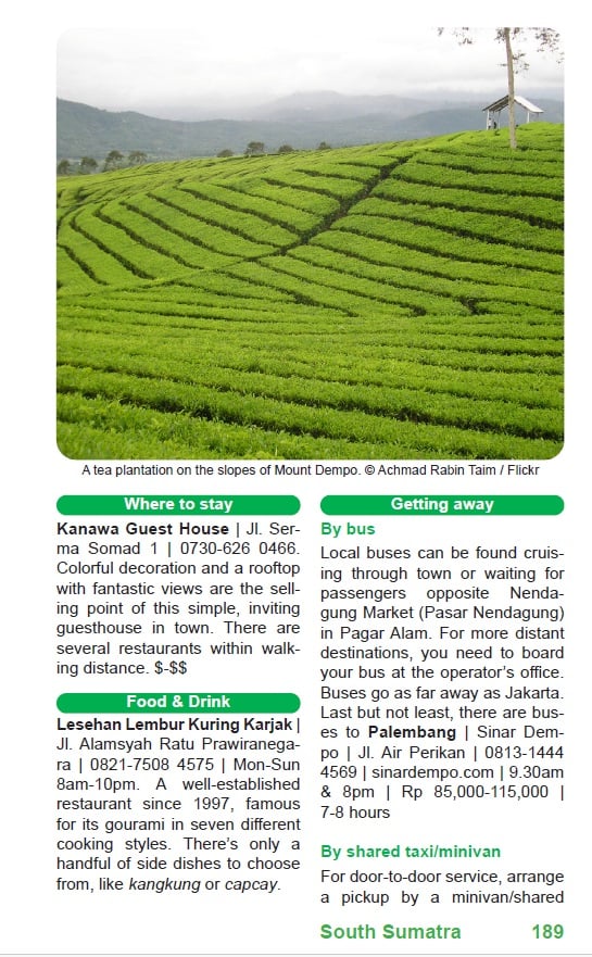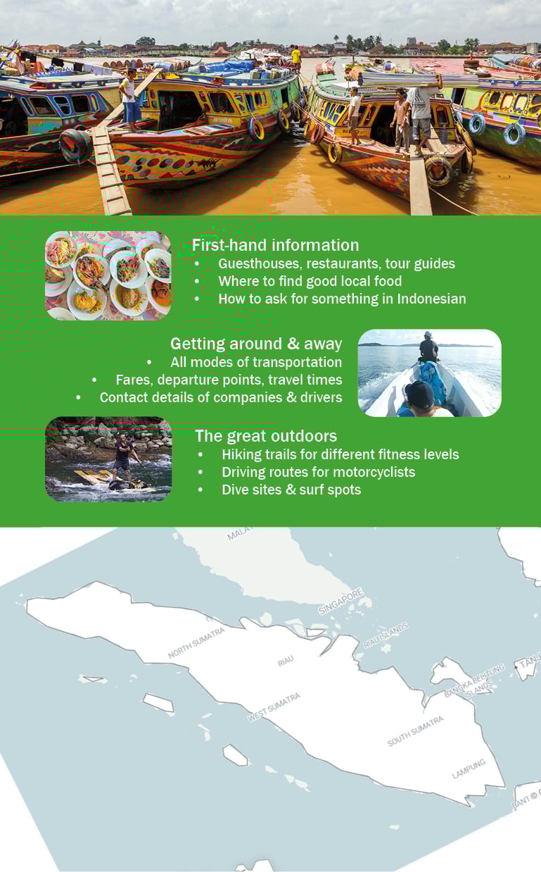 - Destination Guides on all provinces of mainland Sumatra: How to get there, the best things to do, where to stay and eat, and how to get to your next stop.