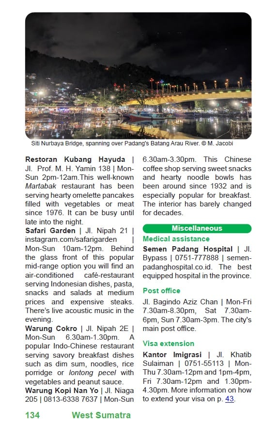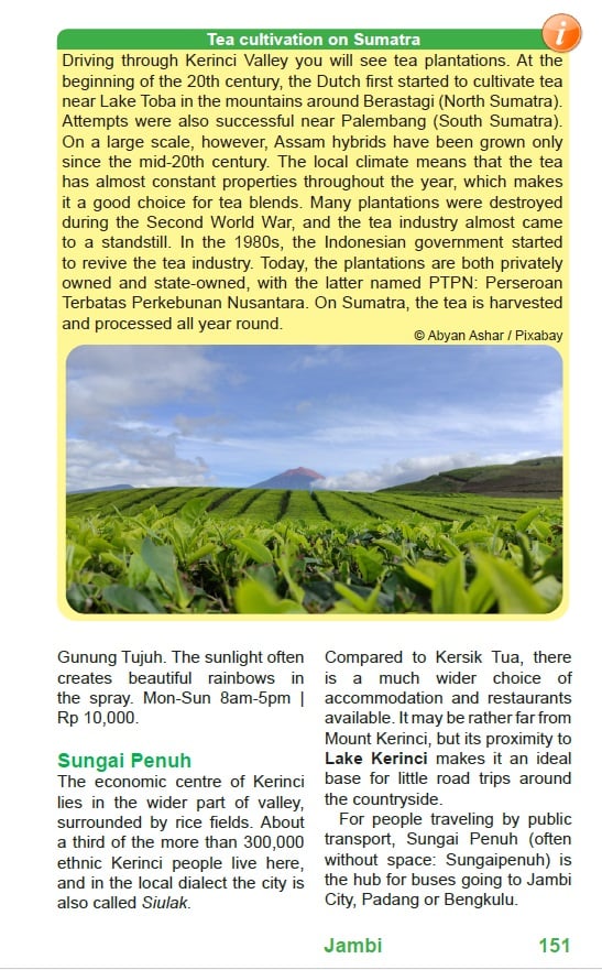 Covering not only North Sumatra, West Sumatra, and Aceh, but also lesser known destinations in Riau, Bengkulu, Jambi, and Lampung, all the way down to the surf beaches of Krui, this e-book serves as your travel companion and a great inspiration for planning your trip. To get in touch with locals, it also includes a brief overview of the most important phrases and vocabulary in Indonesian language.