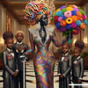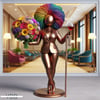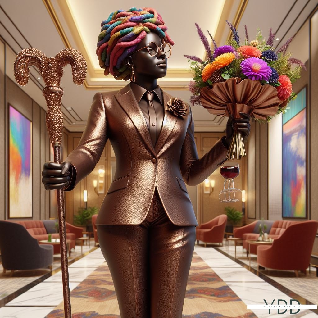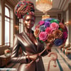 Step into a world of timeless elegance with our captivating digital artwork featuring radiant mothers adorned in bronze beauty. Wrapped in garments that shimmer with a rainbow of colors, these elegant figures exude grace and sophistication. Each holds a vibrant bouquet, symbolizing the love and appreciation celebrated on Mother's Day. Let this enchanting portrayal inspire moments of joy and admiration as you immerse yourself in the artistry of motherhood's elegance.