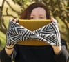The Bulla Cowl is worked in the round, beginning with a provisional cast on. The pattern is knit in a tube, and twisted, before grafting together the ends. The pattern combines plain stocking stitch with stripes and stranded colourwork motifs.
