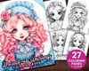 27 Dressed-Up Darling Cute Fancy Girls Victorian Coloring Book, Adults/kids Instant Download - Grayscale Coloring Page - Gift Printable PDF