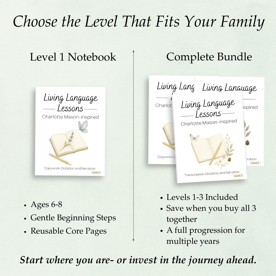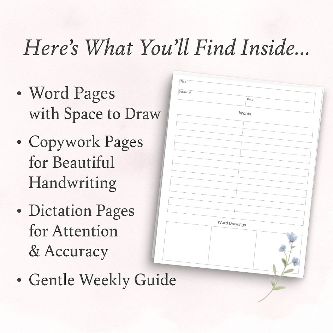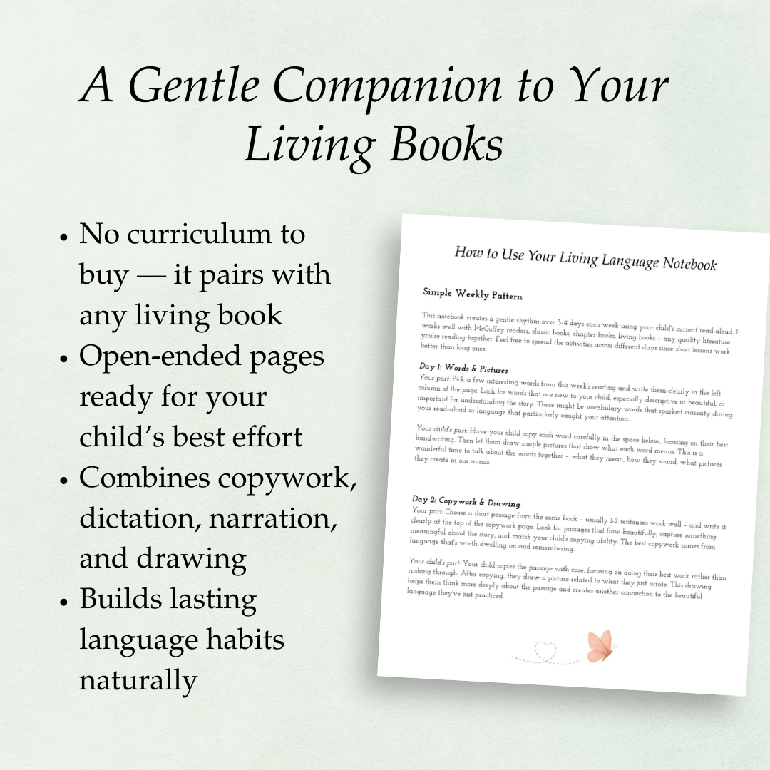 This Living Language Lessons Notebook offers a quiet rhythm to your week: gentle word study, meaningful copywork, and narration that flows from the stories you're already reading aloud.