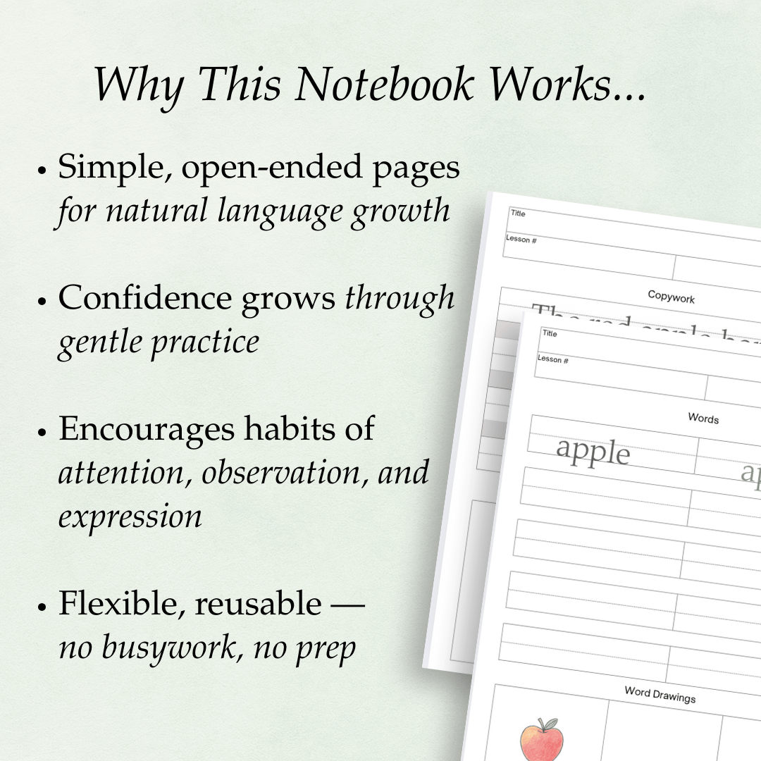 Children learn language best through connection. This notebook invites them to slow down, observe, and delight in words that mean something. And it gives you, sweet mama, the confidence to know that you are doing enough.
