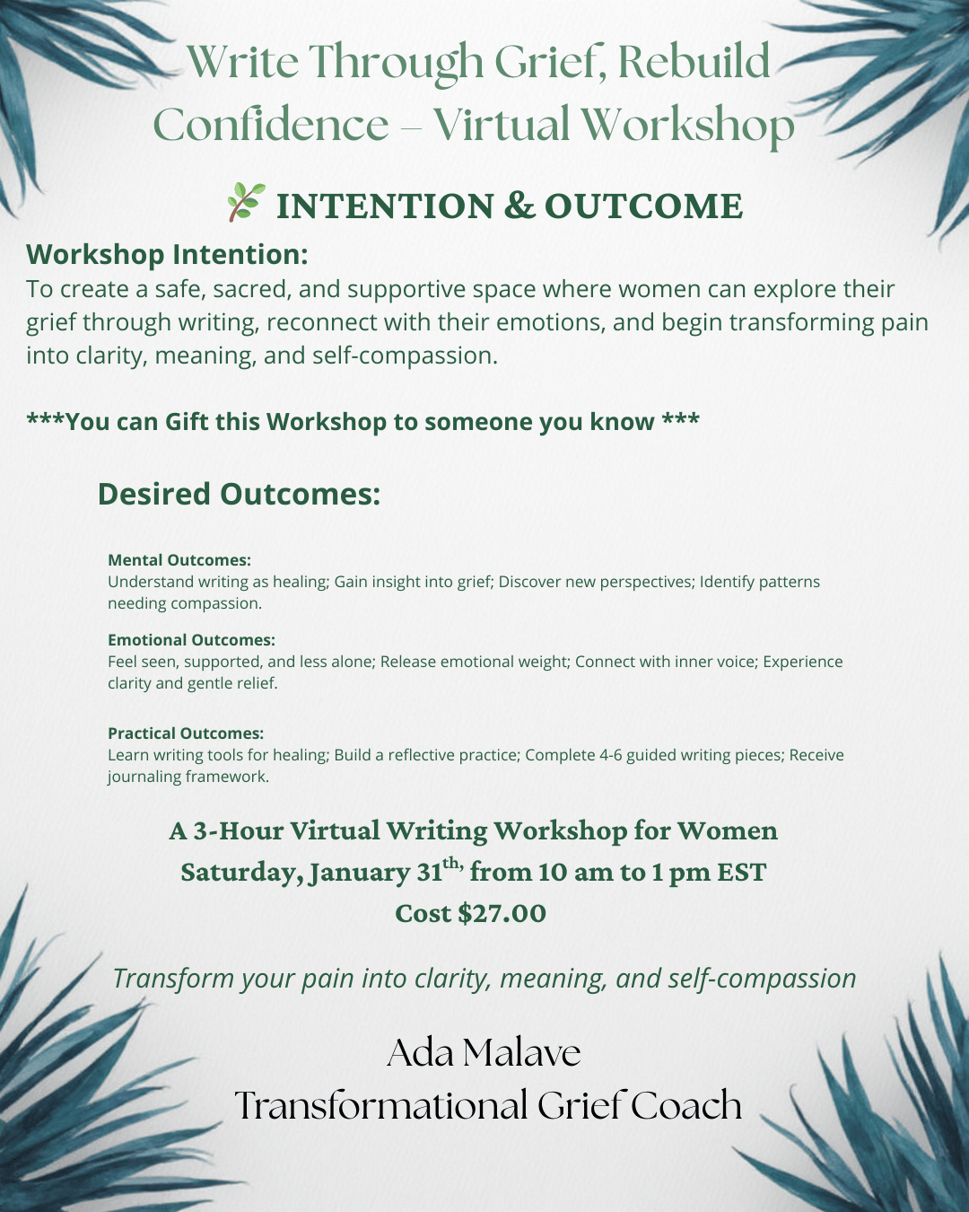 Write Through Grief, Rebuild Confidence – Virtual Workshop