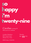 This Hot Pink Minimalist 'So Happy I'm Twenty-nine' invitation is perfect for your upcoming party!