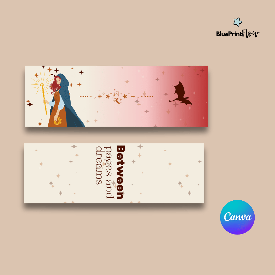 This editable bookmark template is a dream come true for every booklover and fan of the fantasy fiction genre. Designed with a magical touch, the template embodies themes of adventure, destiny, and the enchanting world of stories between pages and dreams.
