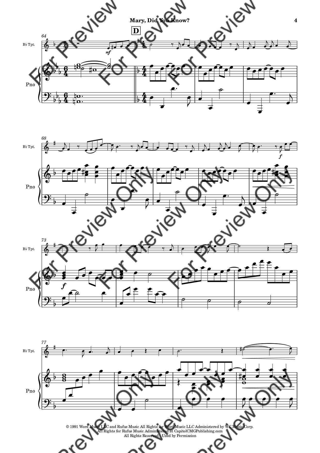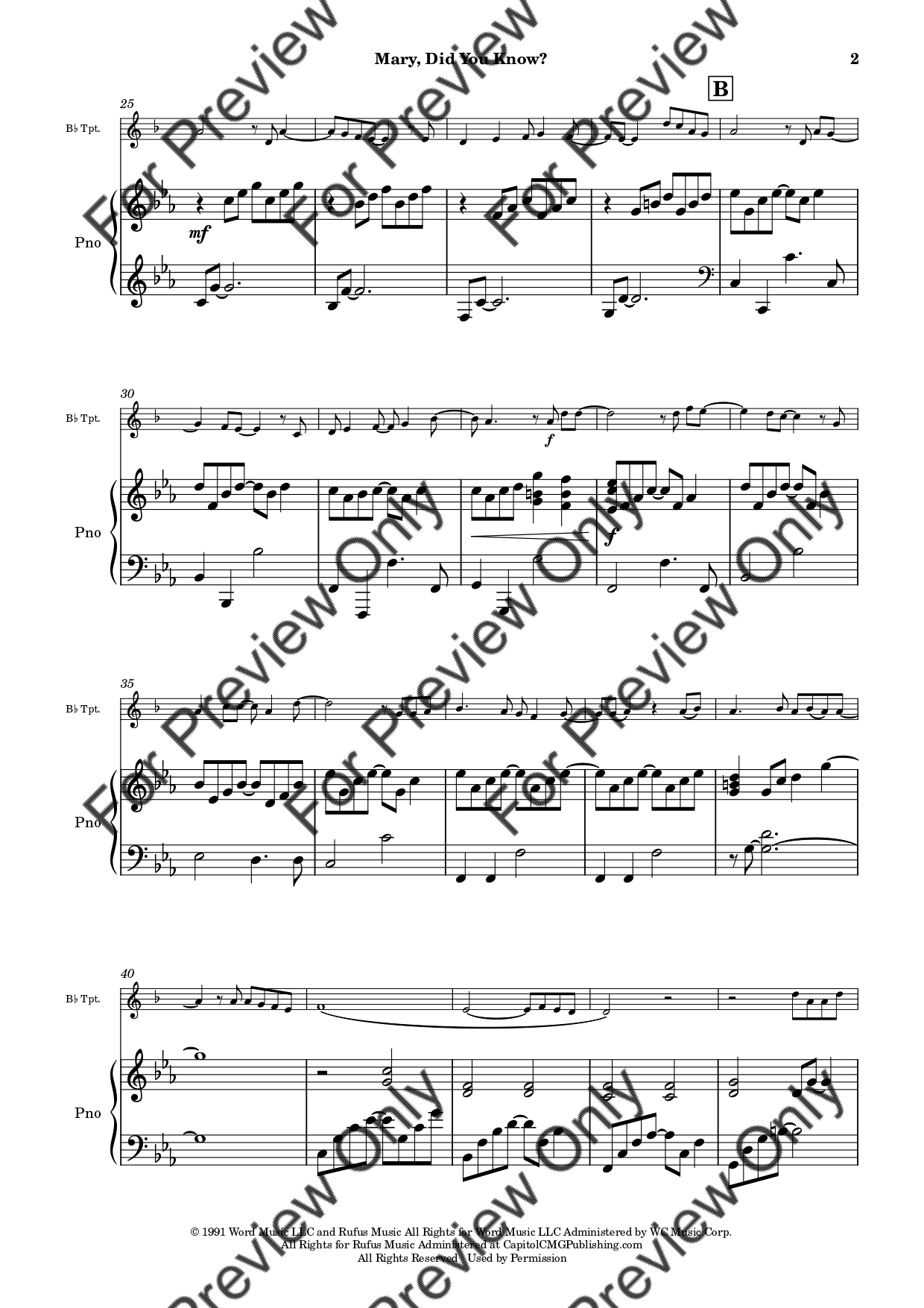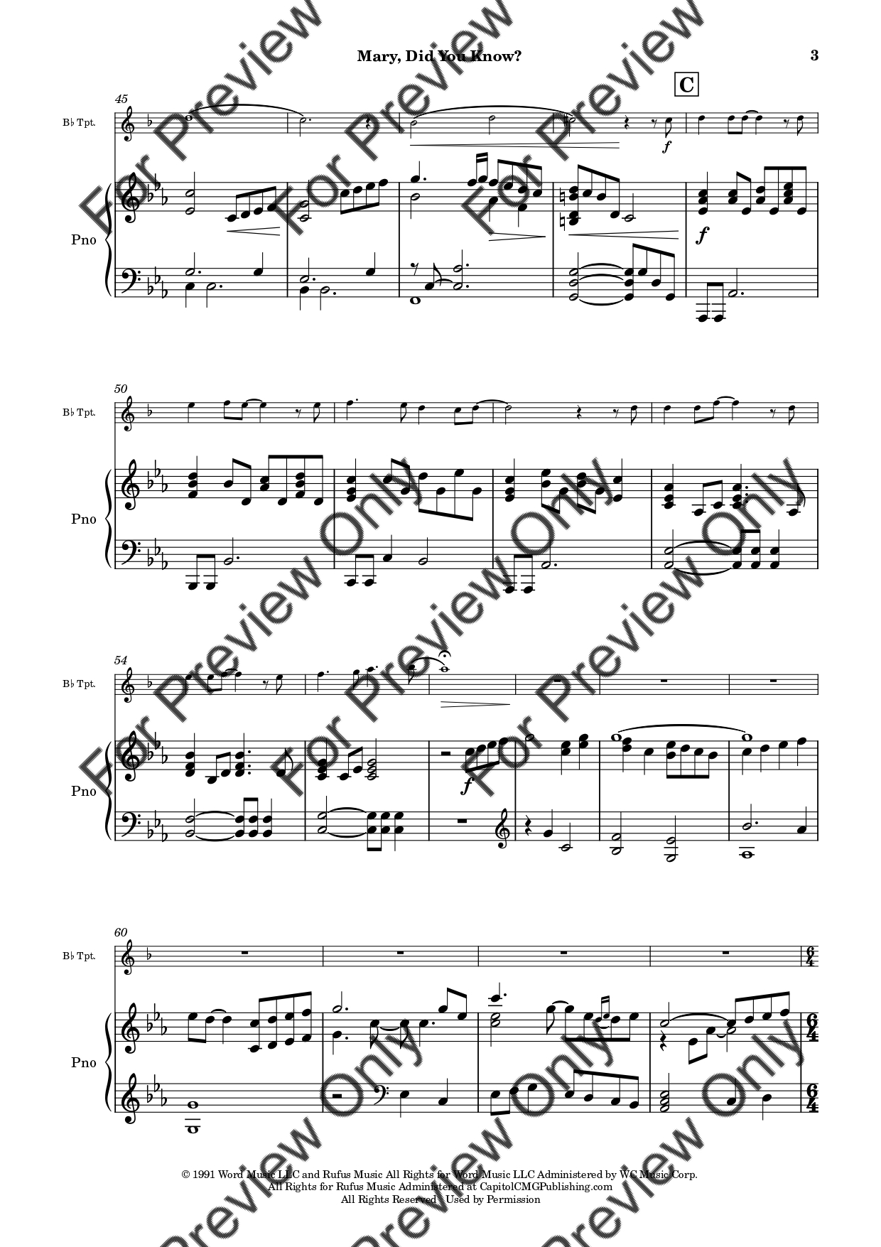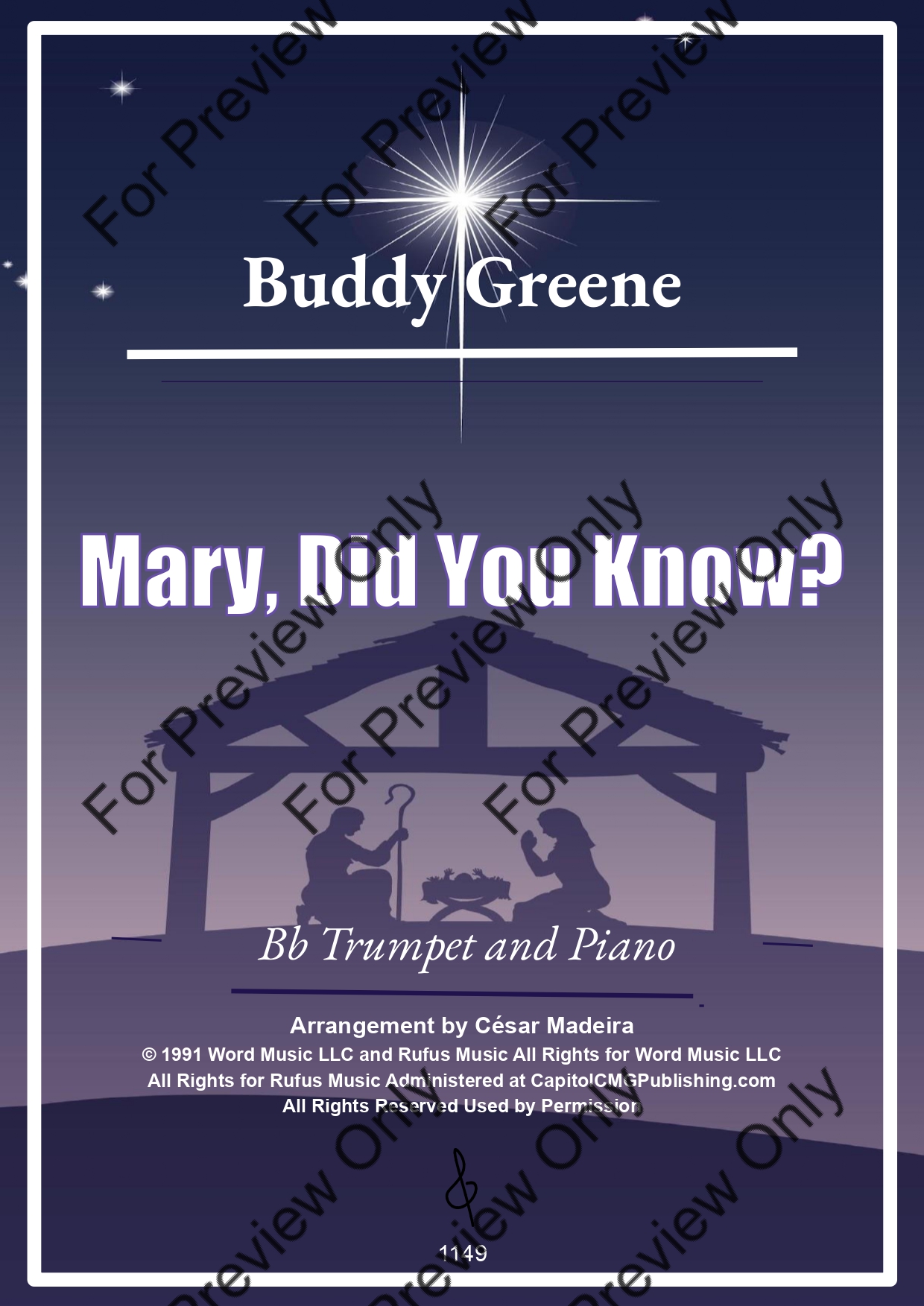 Mary, Did You Know? by Greene. Arrangement for Bb Trumpet and Piano. With Full Score and Individual Parts. Have fun!