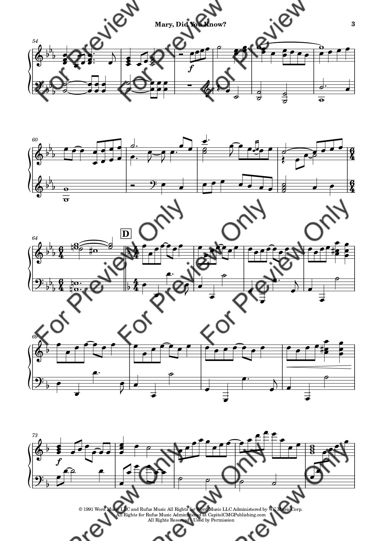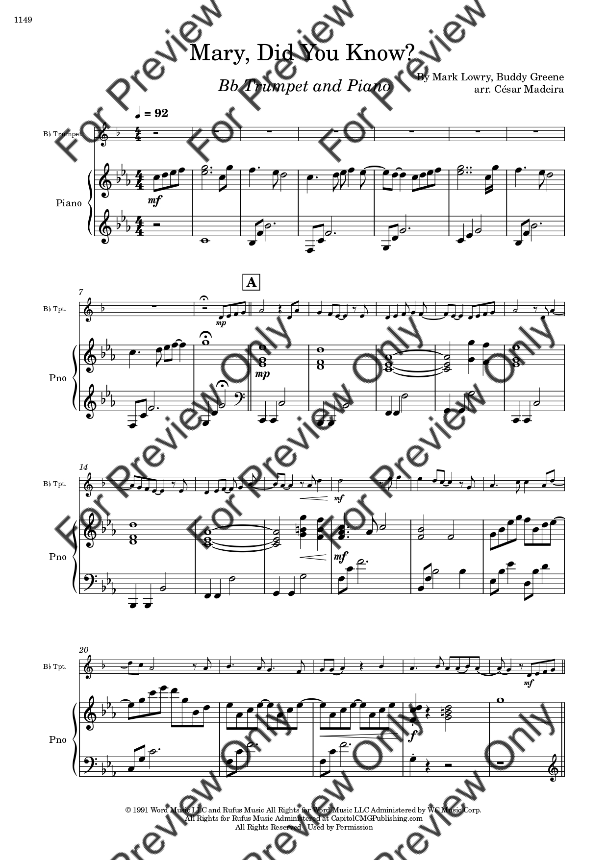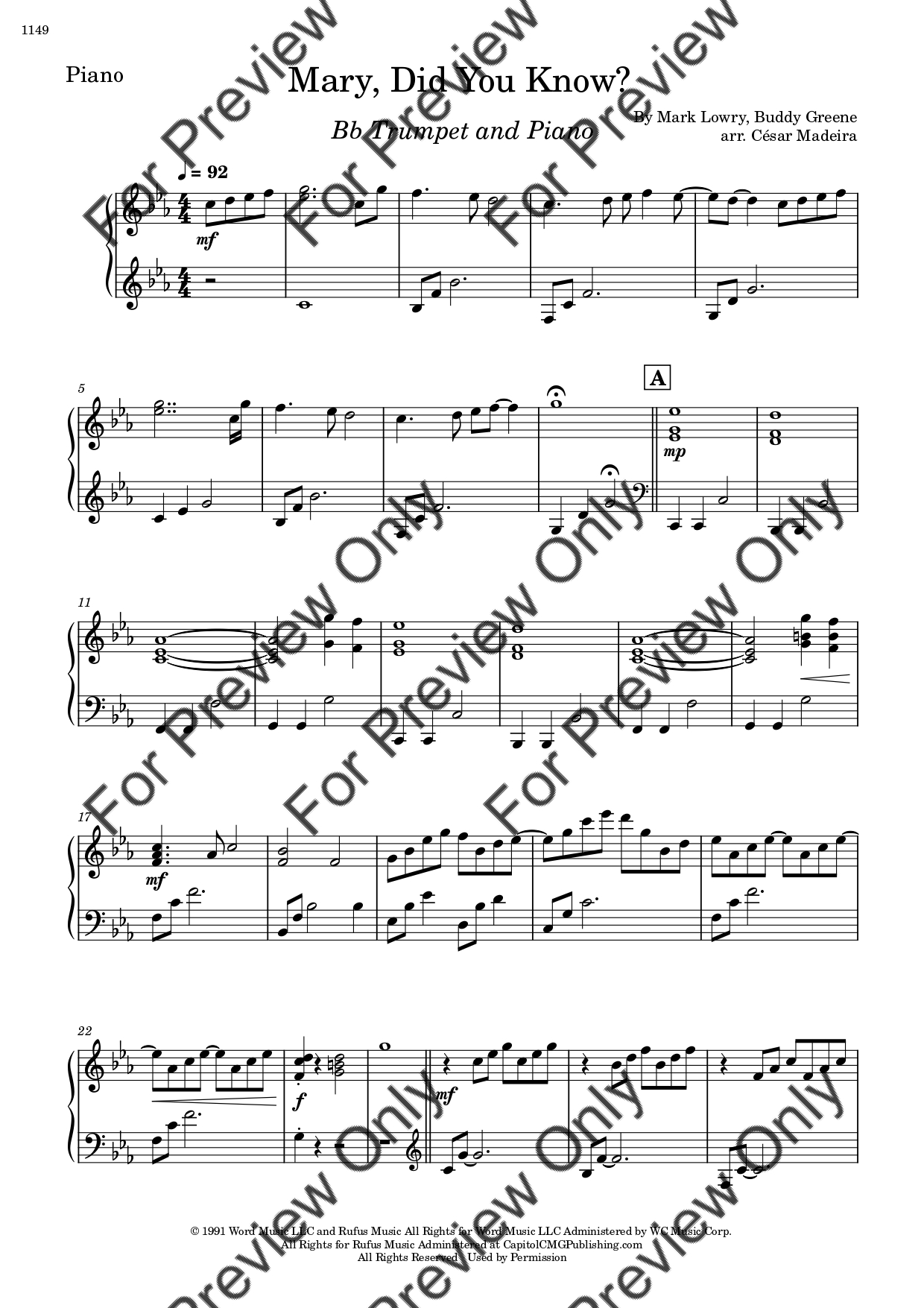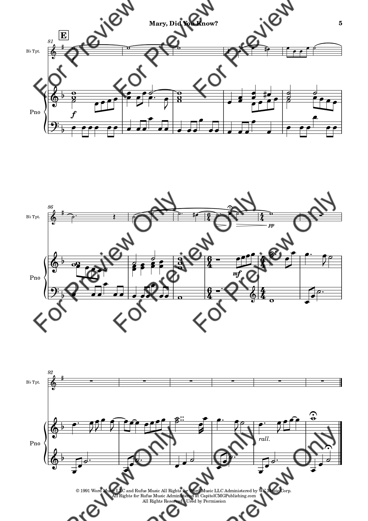 Mary, Did You Know? by Greene. Arrangement for Bb Trumpet and Piano. With Full Score and Individual Parts. Have fun!
