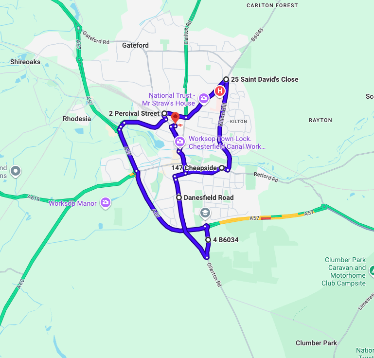 Worksop Driving Test Routes | 6 Google Maps Practice Routes