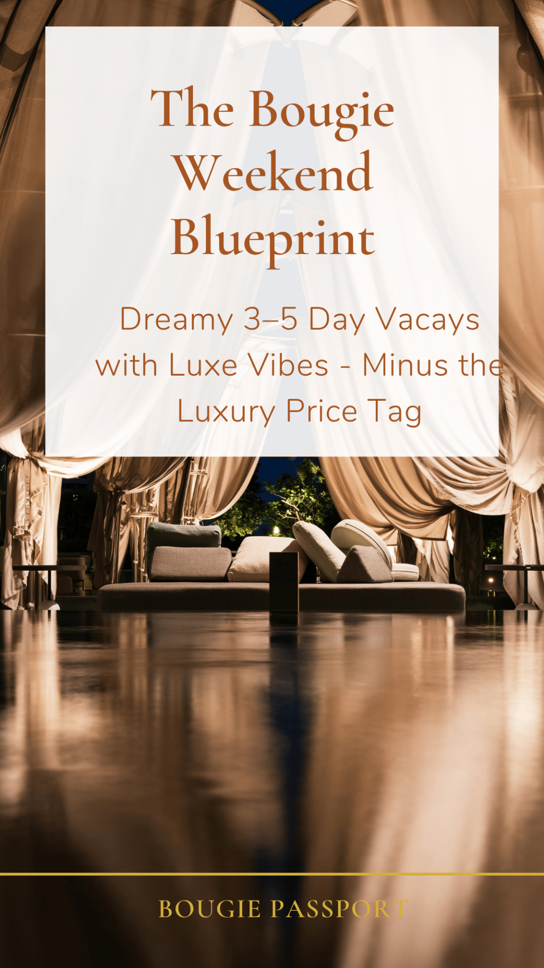 The Bougie Weekend Blueprint™ gives you the plug on affordable, aesthetic, envy-worthy trips that look like luxury — but cost way less than you think.
