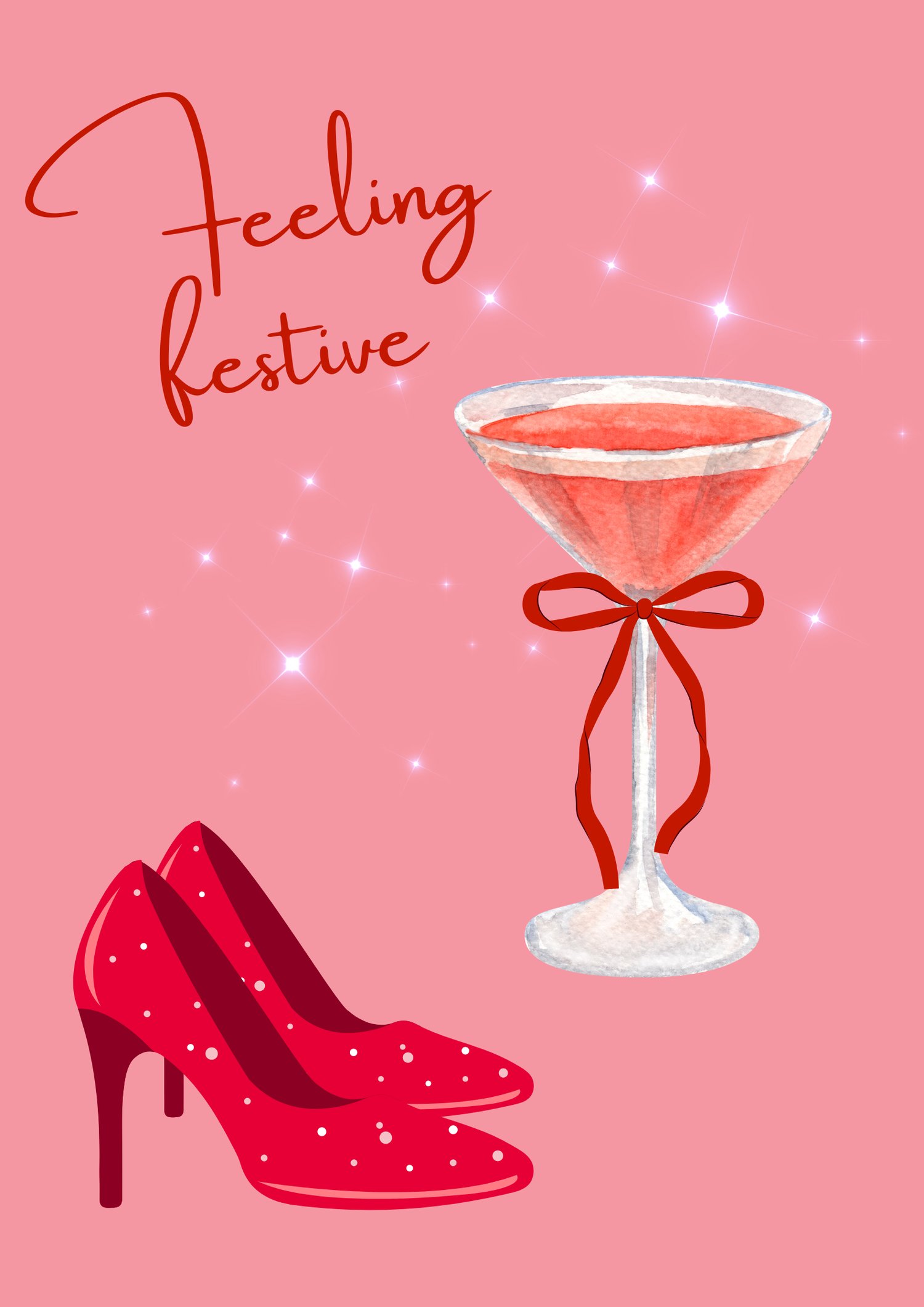Step into the holiday spirit with this glamorous “Feeling Festive” poster! ✨🥂👠