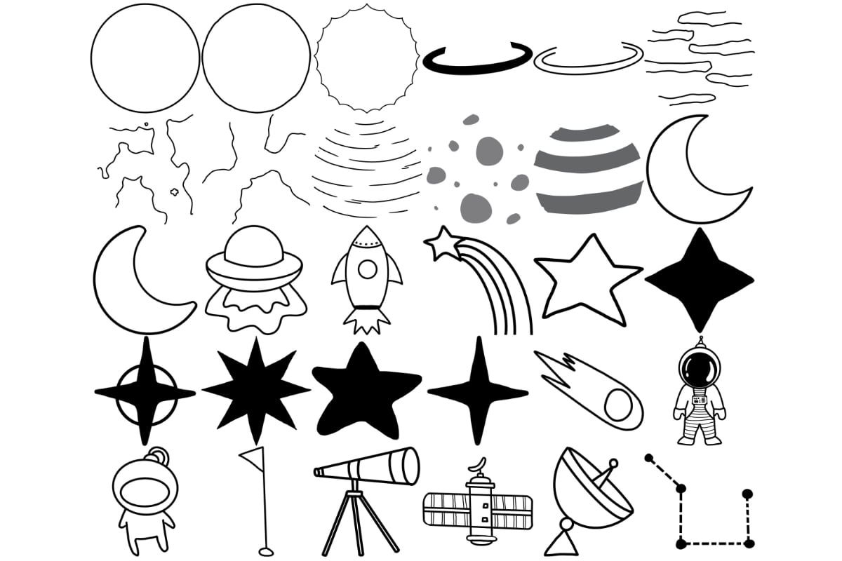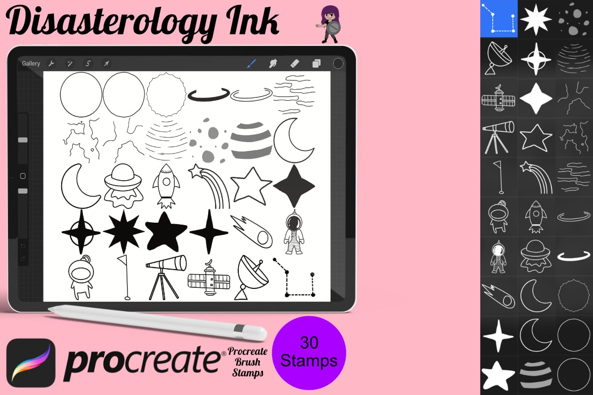 Space Icons Set 1 Procreate Brush Stamps, 30 Space Icons