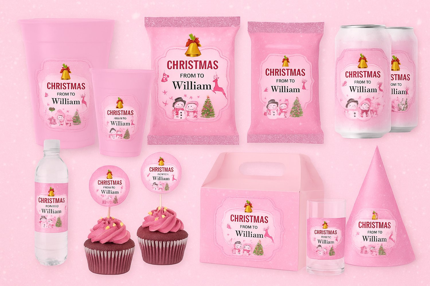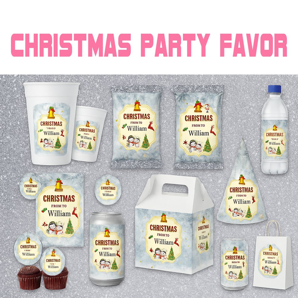 Christmas Party Favor Template Bundle – Editable Canva Chip Bag, Drink Pouch & Holiday Labels | Custom Christmas Party Set | Digital Download