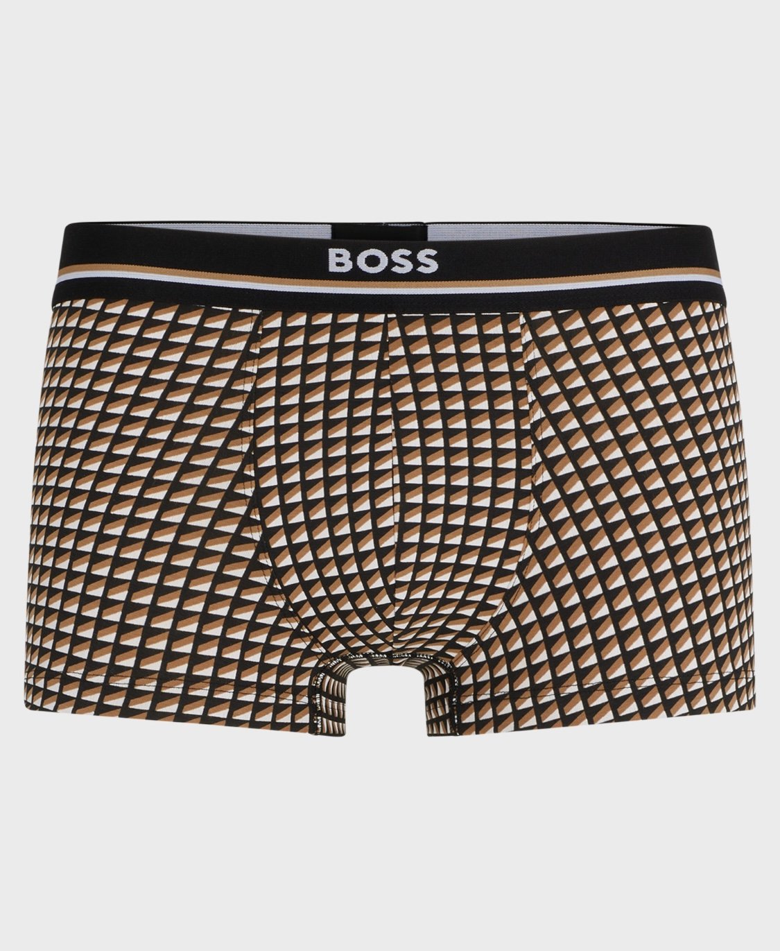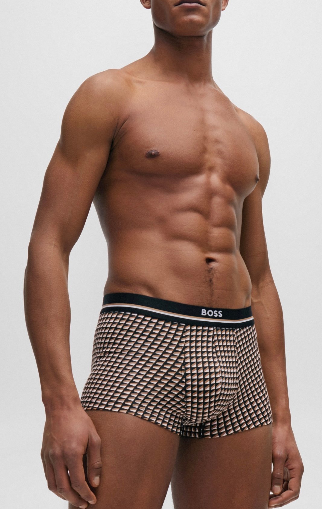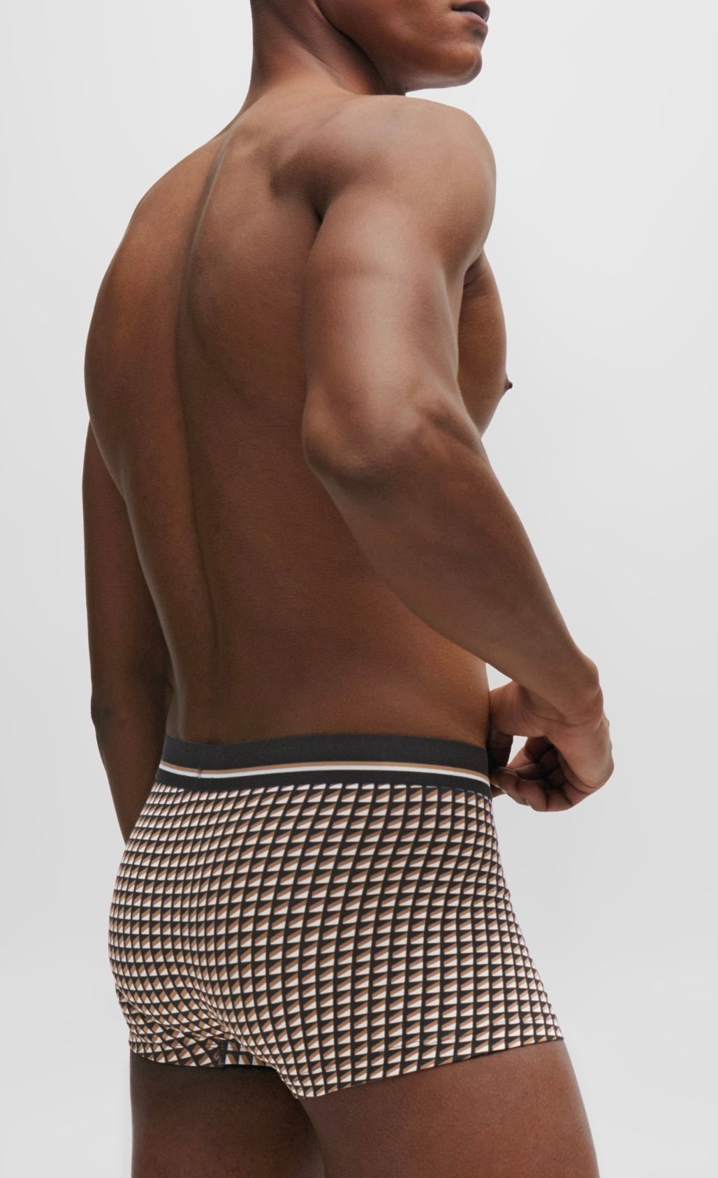 Stretch-cotton trunks with micro pattern and logo waistband.