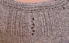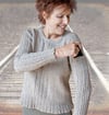This jaunty pullover marries the charm of lace with urban details. Worked in the round from the bottom eyelet trim rib, a front eyelet rib panel adds interest to the eye and to the knitting. Details like eyelet ribbing on the cuffs of the sleeves, lacy bicep full or faux pockets, and eyelets on the cap of the sleeve are sure to spark your interest.