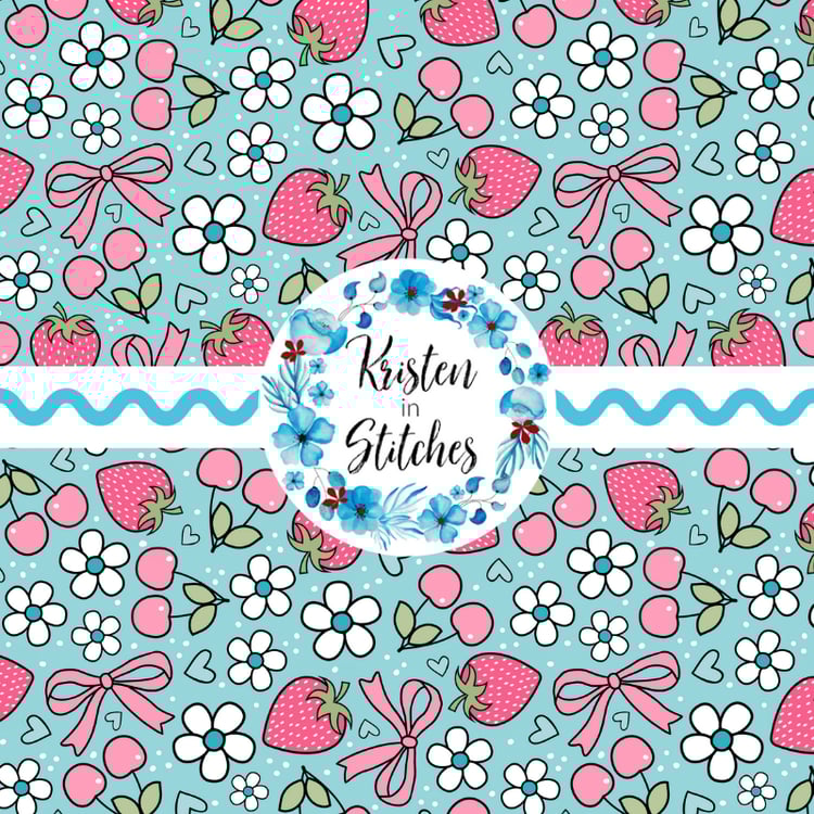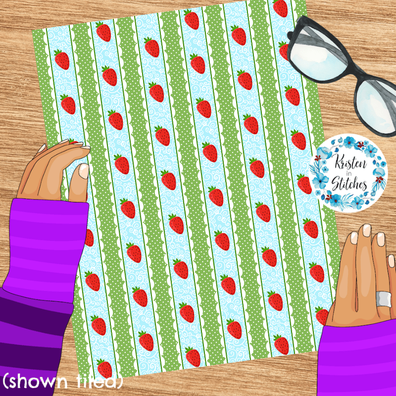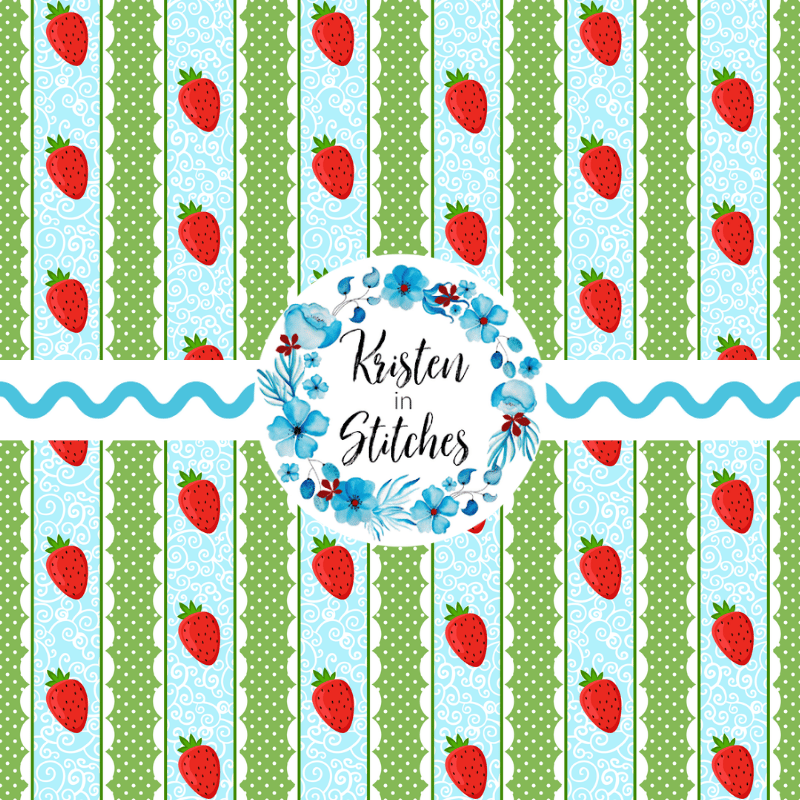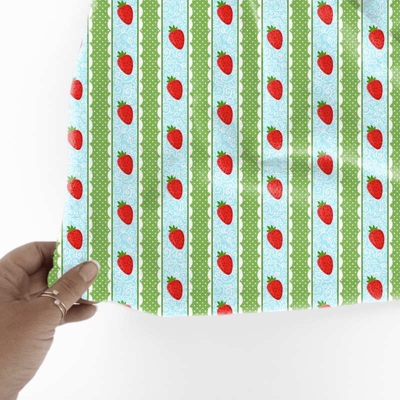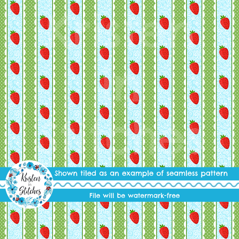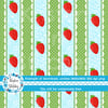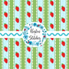 Sweet Lace Strawberry Stripes Seamless Pattern, Blue and Green
